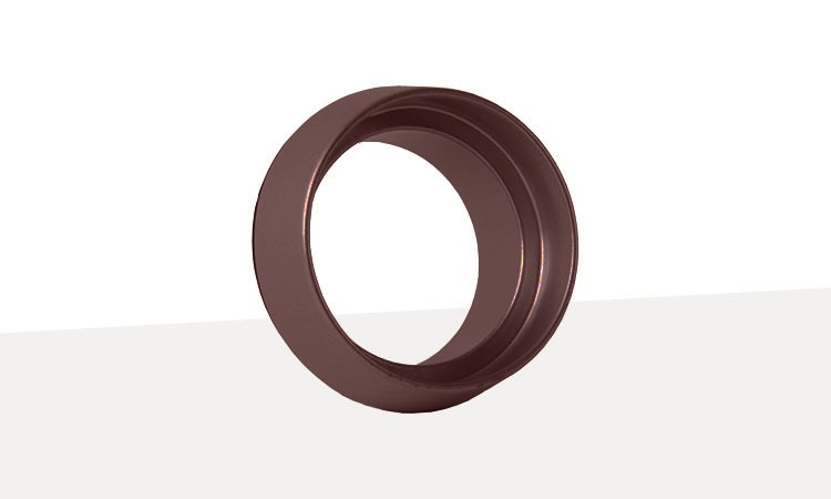A cylinder guard in a dark bronze finish. The outer shield ring is fully beveled which protects from either prying or twisting. The ring is hardened steel so that the shape and strength makes it virtually impossible to grip. A 1/4in. thick stile wall for 5 or 6 pin cylinder.