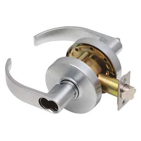 Grade 2 office cylindrical lock SFIC with curved trim in Satin Chrome finish.