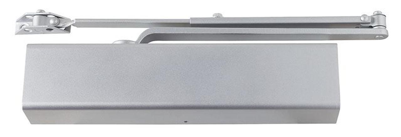 Light duty surface door closer with standard cylinder, less coverage and regular arm in Aluminum finish.