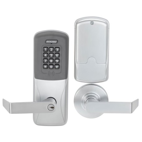 Schlage CO-200-MS-70-KP RHO 626 PD Standalone Electronic Lock is a keypad programmable lock with mortise and Schlage standard cylinder. Classroom function with a Rhodes style lever. Available in satin chrome.