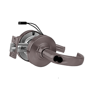 Electrified cylindrical lock with Sparta lever style and disposable SFIC cylinder in Oil Rubbed Bronze finish.