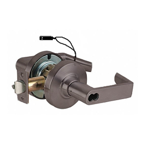 Electrified cylindrical lock with Rhodes lever style, FSIC cylinder and request-to-exit in Oil Rubbed Bronze finish.