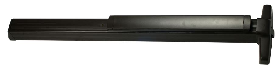 The 35A Series devices are narrow stile heavy-duty push pads commonly used in higher education, K-12 schools, hospitals, hospitality, and government. Von Duprin offers many mechanical and electromechanical options including types of touch bar trims. Architectural design elements differ slightly between the 33A and the 35A. The 35A Series device has a smooth mechanism case, while the 33A Series has a grooved mechanism case. This particular 3' exit only device possesses a smooth case, a concealed vertical rod with a black finish.